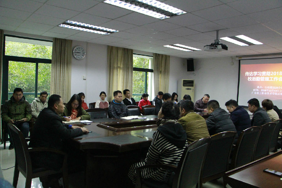 会上,副处长陈杰东简要汇报并传达了2018年全省学校后勤管理工作会议精神,杨华江传达了李铭辉副书记对贯彻落实会议精神的要求,对贯彻好2018年全省学校后勤管理工作会议精神、把“改革、创新、实干、奉献”融入到工作中、做师生满意的后勤做了部署。(后勤管理处)