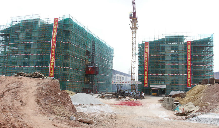 2017年5月23日,南海校区5-8栋学生公寓主体结构完成封顶。主体结构的封顶标志着学生公寓整体框架基本完成,进入了全面安装、装饰阶段,施工进度近半。5月31日,学校校长卢坤建,党委副书记朱其祥、周炳全视察施工现场。
