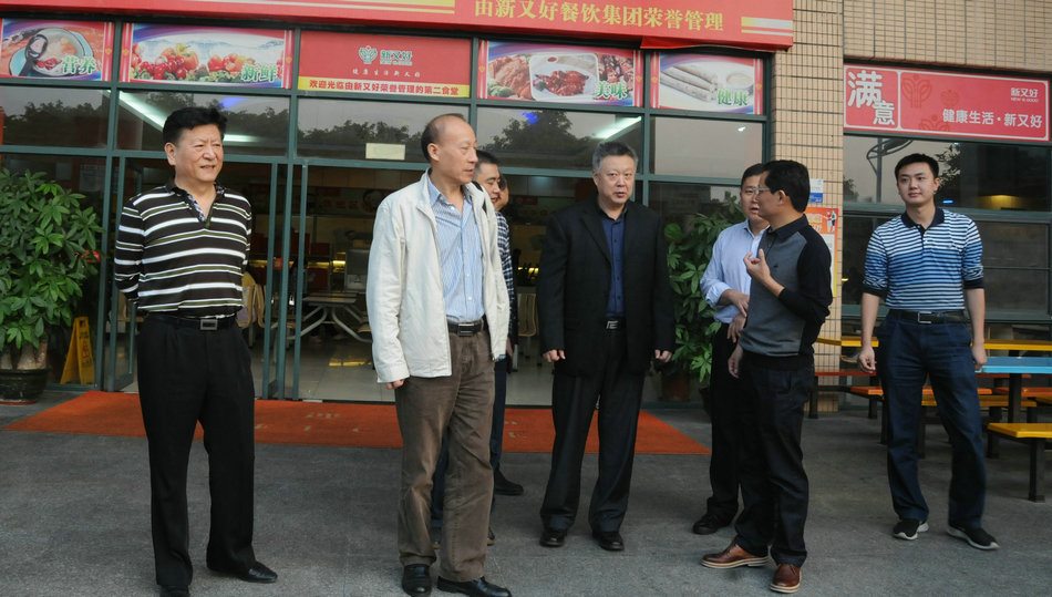 11月20日下午,教育部发展规划司高校后勤改革处朱宝铜处长及中国教育后勤协会副会长兼秘书长、中国人民大学黎玖高校长助理在省教育厅后勤产业办主任白建刚的陪同下莅临我校考察指导,我校党委书记王新新、院长叶小明在南海校区接待了上述领导。朱宝铜处长、黎玖高副会长对我校南海校区规划建设和多功能文化食堂进行了深入细致的考察,杜安国副院长全程陪同并详细汇报了多功能文化食堂的建设理念、校企协同过程、多功能的实现、监管体系建立、食堂文化内涵再提升设想等。