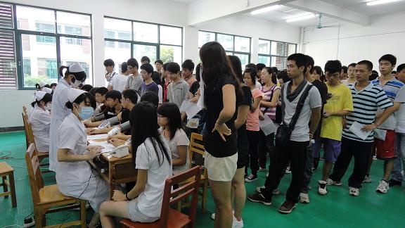 为好新生在军训前的体检工作,后勤产业处、医务所于9月14日及17日两天组织新生开展体检工作。广东省高等教育学会保健医学院专业委员会秘书长区莎白、学生体检主管陈秀玲一行莅临体检现场指导工作。
