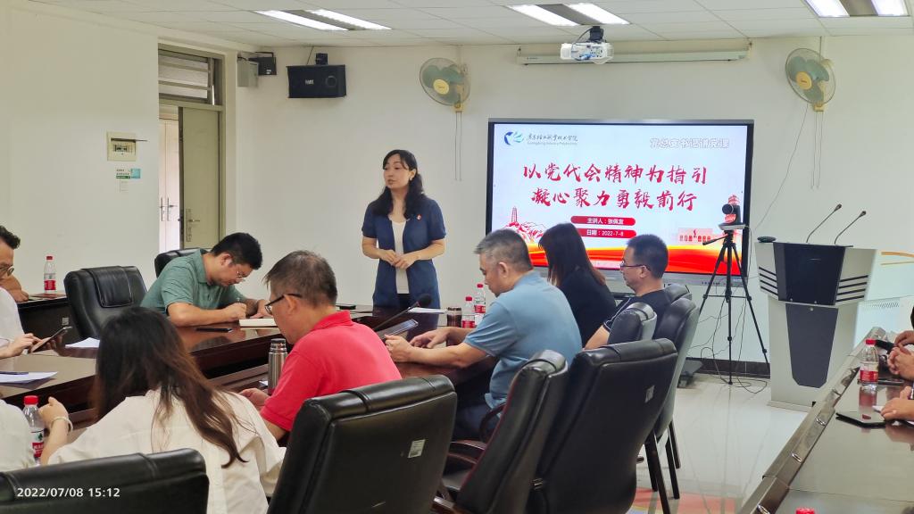 7月8日,继续教育学院党总支书记张佩宜以《以党代会精神为指引 凝心聚力勇毅前行》为题,在佛山南海北校区行政办公楼2221会议室,为党总支全体党员讲党课。