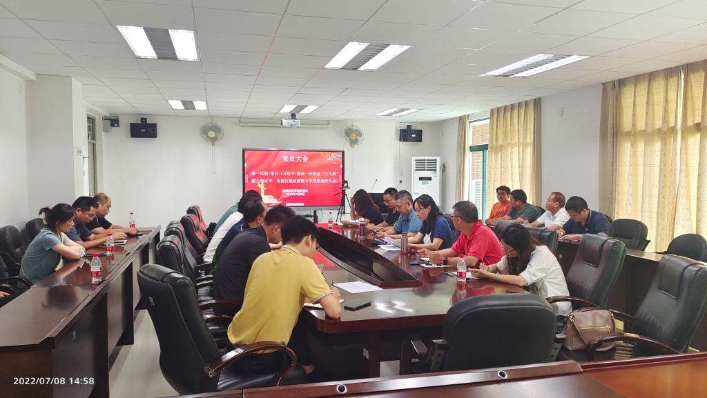7月8日,继续教育学院党总支在南海北校区行政楼2221会议室召开全体党员会议。