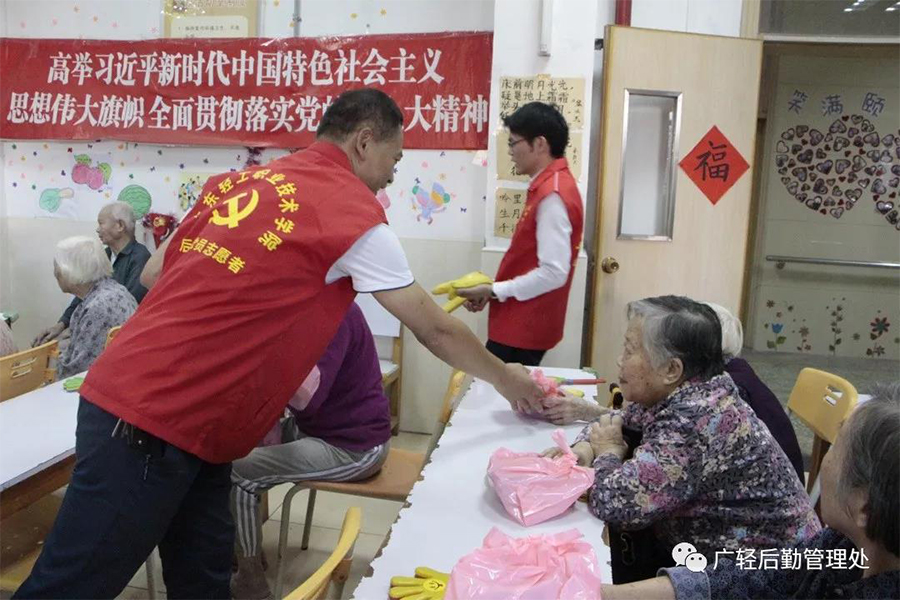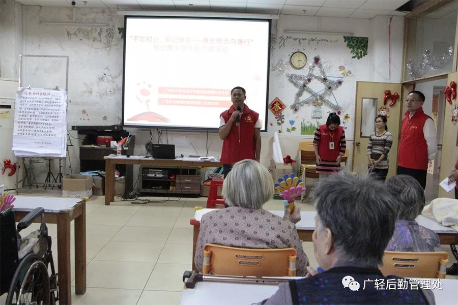 为认真贯彻落实“不忘初心、牢记使命”主题教育,办实事、办好事,弘扬中华民族尊老敬老的传统美德,11月8日,后勤党总支联合广东新又好企业管理服务有限公司好来客党支部组织全体党员和入党积极分子到南海区桂城长者颐乐中心(桂城敬老院)开展尊老敬老慰问共建党日活动。