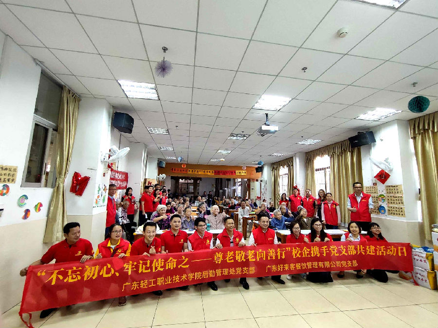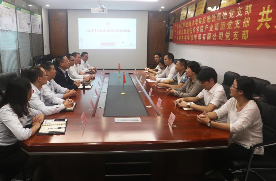 为贯彻习近平新时代中国特色社会主义思想,深入推动后勤党建工作,创新后勤党建载体,以党建促进后勤服务与提升管理水平,2017年,广东轻工职业技术学院后勤管理处党支部联合经营我校食堂的好来客党支部开展校企支部共建活动。后勤管理处党支部继推进党支部进社区、进食堂后,又推进党支部进企业,进一步强化作风建设、增强工作使命感、责任感,以校企党支部共建新模式来推进学校后勤保障工作。我校后勤校企党支部共建模式还获得了省教育厅高校基层书记案例一等奖的优异成果。