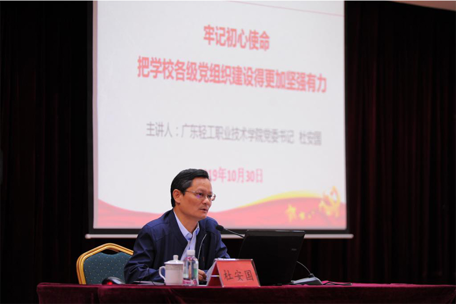 杜安国以“牢记初心使命,把学校各级党组织建设的更加坚强有力”为题,结合学习收获、调研成果,围绕深入学习贯彻习近平总书记关于加强和改进高校党的建设重要论述、学校党建工作存在的问题和不足、全面加强和改进学校党的建设、党建引领保障高质量发展等四方面作了深入阐释。