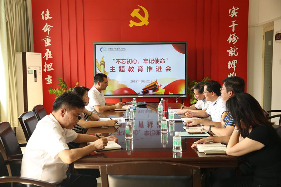 10月25日上午,我校在广州校区办公楼二楼会议室召开“不忘初心、牢记使命”主题教育推进会,传达学习部分中管高校主题教育工作座谈会精神、全省高校主题教育推进会精神,贯彻落实省委主题教育巡回指导第十三组指导意见,研究部署我校主题教育下一步工作。党委书记杜安国,党委副书记、纪委书记朱其祥,党委副书记李铭辉,副校长王玫瑰、李丽,学校主题教育办相关成员以及各党总支书记参加推进会。