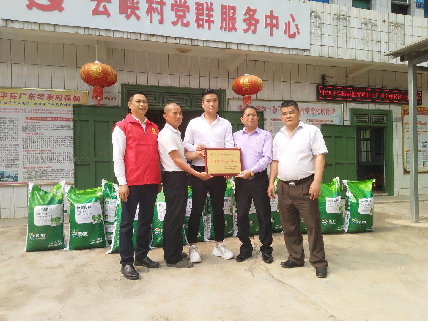 此次助农活动,广州上善餐饮企业管理有限公司向云峡村捐赠了6吨多化肥,助力云峡村贫困户开展春耕工作。捐赠仪式后,校企与云峡村村干部、村民代表等召开农产品销售及就业帮扶座谈会,探讨校企村三方协作帮助解决云峡村富余劳动力外出就业和农产品销售出路问题,为该村外出务工人员就业及农产品销售提供便利,并达成了农产品销售和就业帮扶初步意向。校企一行还走访慰问了困难群众,向困难农户送上慰问金并购买了一批农产品。