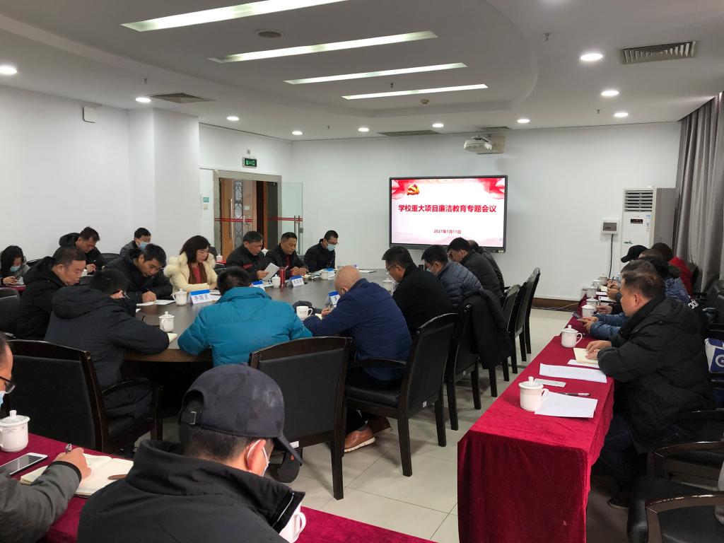 近期,学校南海校区体育馆和学生公寓项目顺利取得施工许可证进入建设阶段,学校高度重视项目建设的健康、安全、高质量开展,2021年1月11日由纪检室和后勤管理处联合召开了学校重大项目启动建设前廉洁教育专题会议。学校党委副书记、纪委书记朱其祥,副校长李丽,纪检室、后勤管理处、审计处、财务处、招标办负责人,后勤管理处副科级及以上干部、重点岗位工作人员及南海校区重大基建项目施工单位、设计单位及监理单位相关人员参加了此次会议。李丽主持会议。